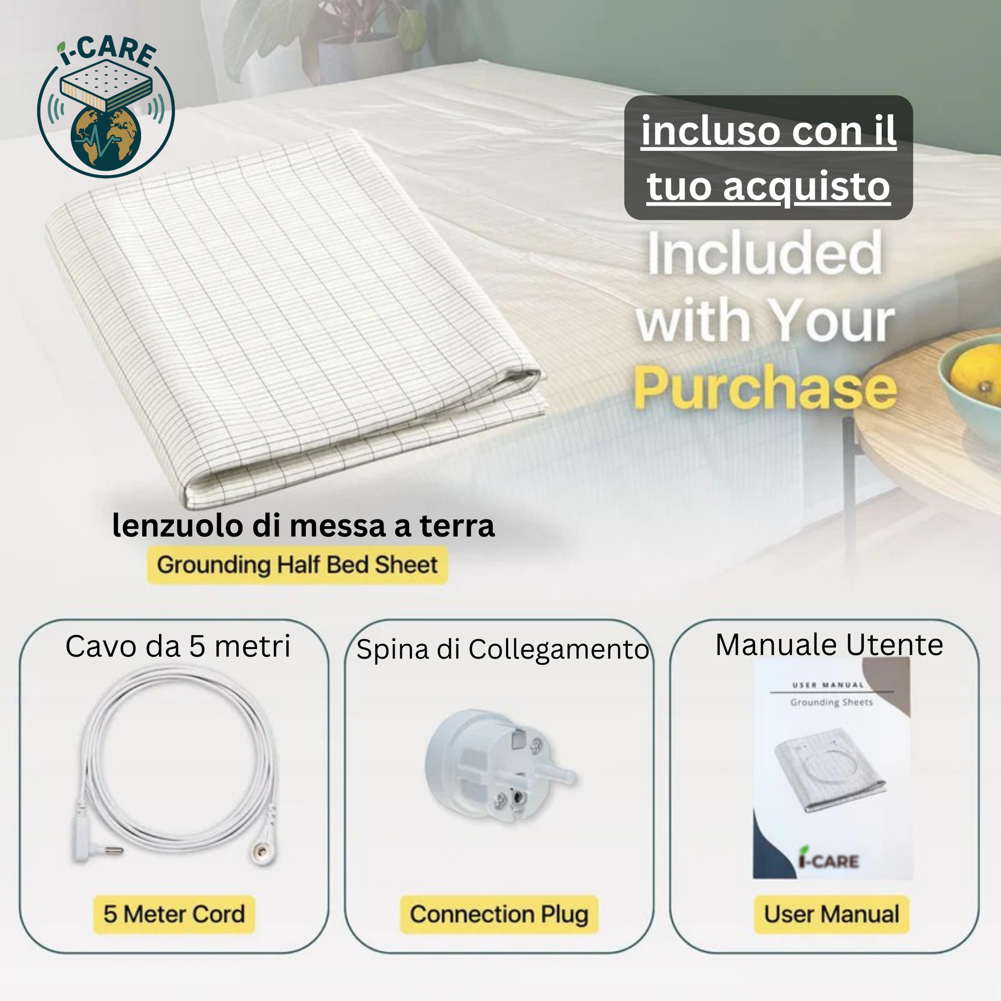 Crafted from high-quality cotton and conductive silver. The silver fiber is woven into the cotton, making our half bed sheets very comfortable and also highly conductive to ensure you stay grounded. 🌿⚡ Cord and connection plug are included. This grounding half bed sheet measures 265x90 cm
